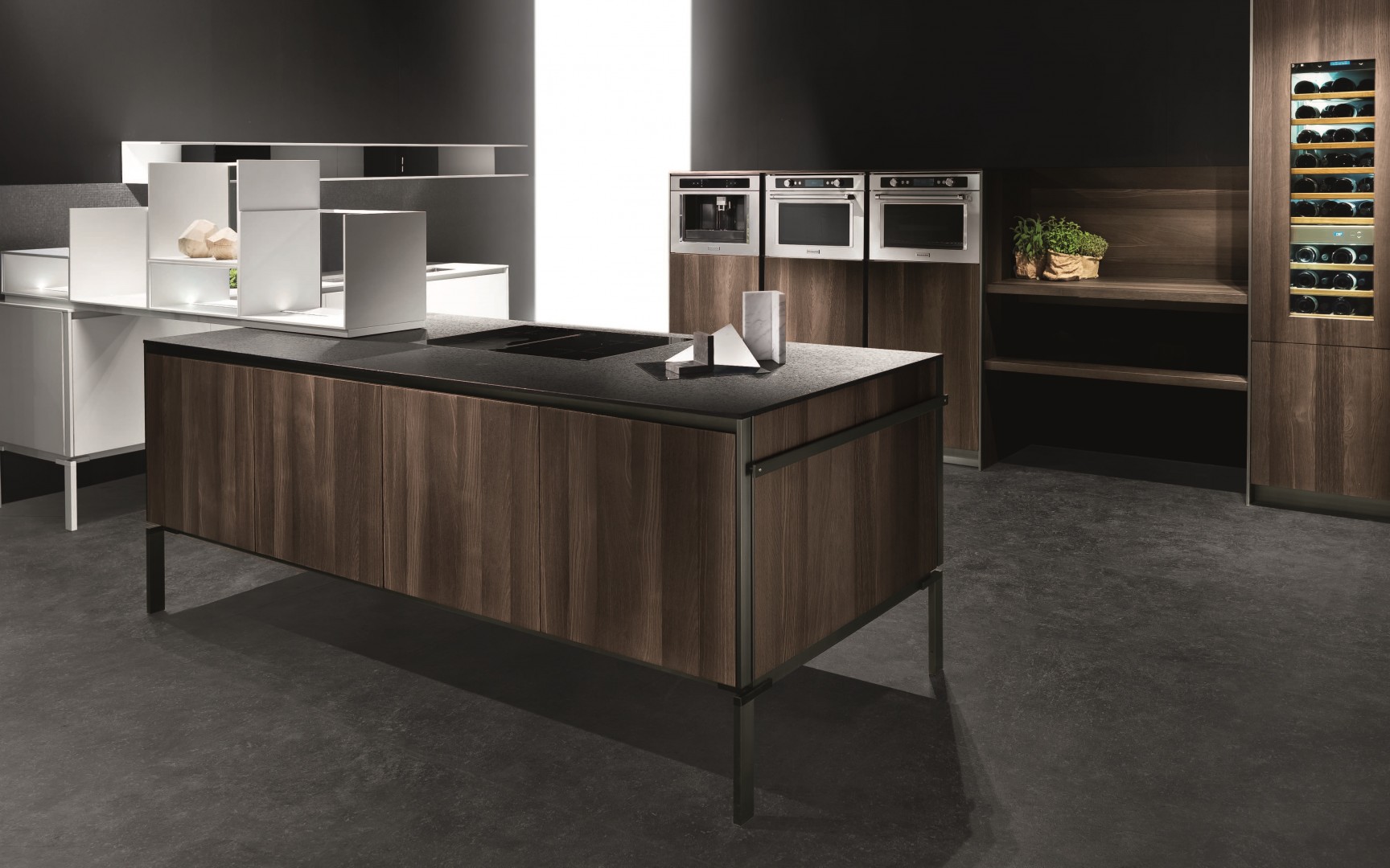 Semplicemente favolosa, siamo certi di averla sognata ed averla ora qui realizzata e montata ci stupisce, nel dubbio di stare ancora sognando ammiriamo ogni particolare, desideriamo fissarli tutti nella memoria. Il telaio in alluminio che accoglie l’intera struttura posandola a terra con passo unico, l’alternarsi del colore, chiaro e scuro, che ci solletica il gusto, i profili perfetti, la zona cottura lucida e seducente, siamo assolutamente conquistati. La fantasia che diventa realtà.